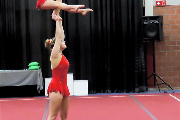 Trio Joëlla, Emilia en Angelina hadden er veel zin in en dat was duidelijk merkbaar: alle delen vol overtuiging uitgevoerd en tot een goed einde gebracht. Net voor ze de wedstrijdvloer op gingen, besloten ze om de salto toch te doen, die niet lukte op de eerste wedstrijd. En die ging ook heel goed! De hele ploeg keek vol spanning toe tijdens hun optreden. Zo goed gedaan!!! Zij behaalden een prachtige 8ste plaats!